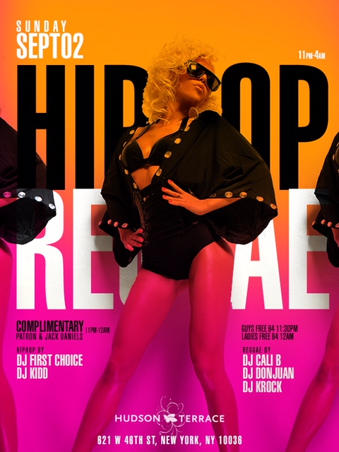 Labor Day Weekend No Images? Click here Hip Hop Vs Reggae Labor Day Weekend Sunday September 2nd Everyone Free entry + Free Patron Free RSVP Here Ladies free before 12am & Guys free before 11:30pm with rsvp at Hudson Terrace46 West 46th Street, New York, NY (Between 10th & 11th Ave) Music By: Power 105's DJ First Choice→